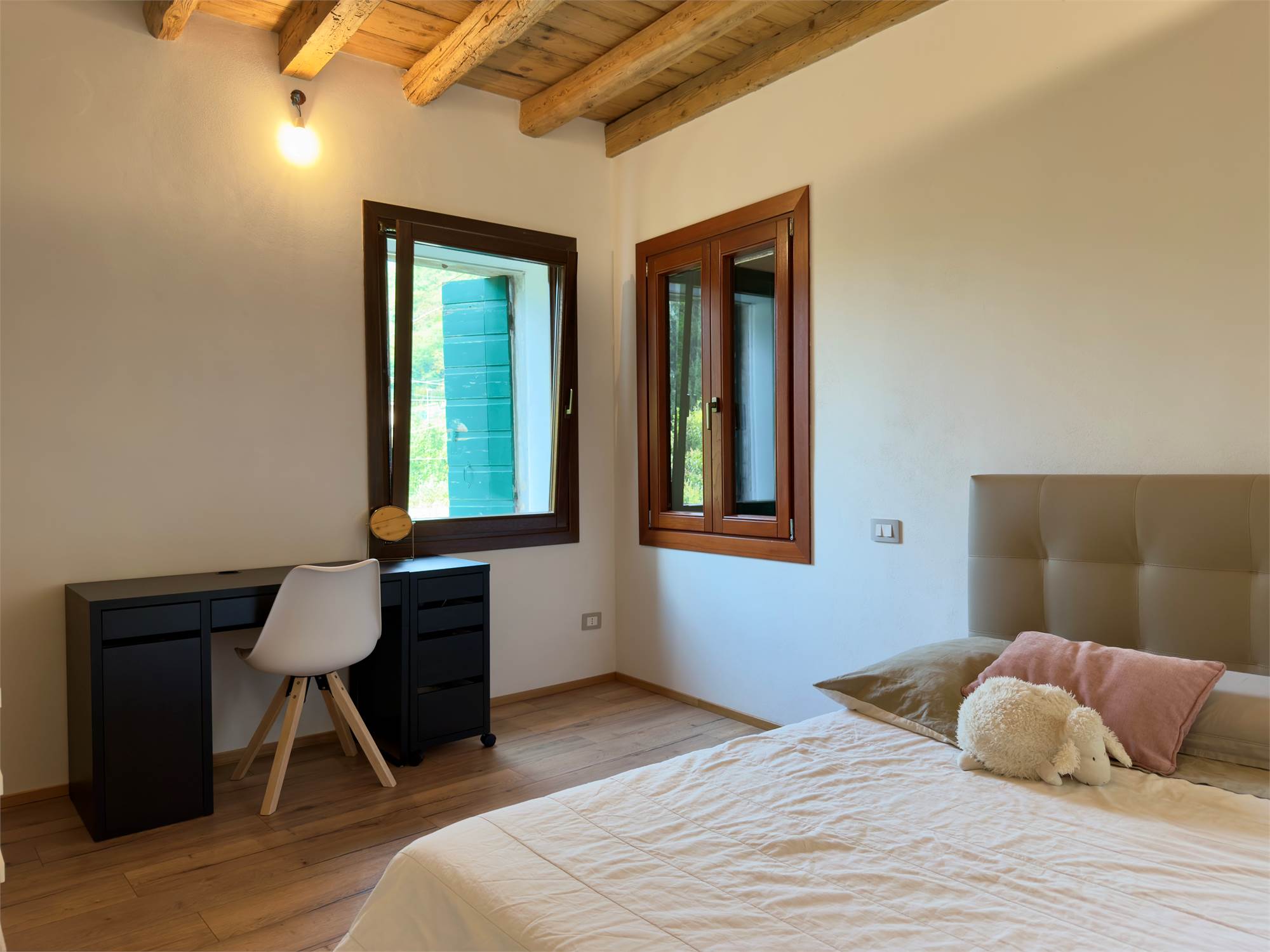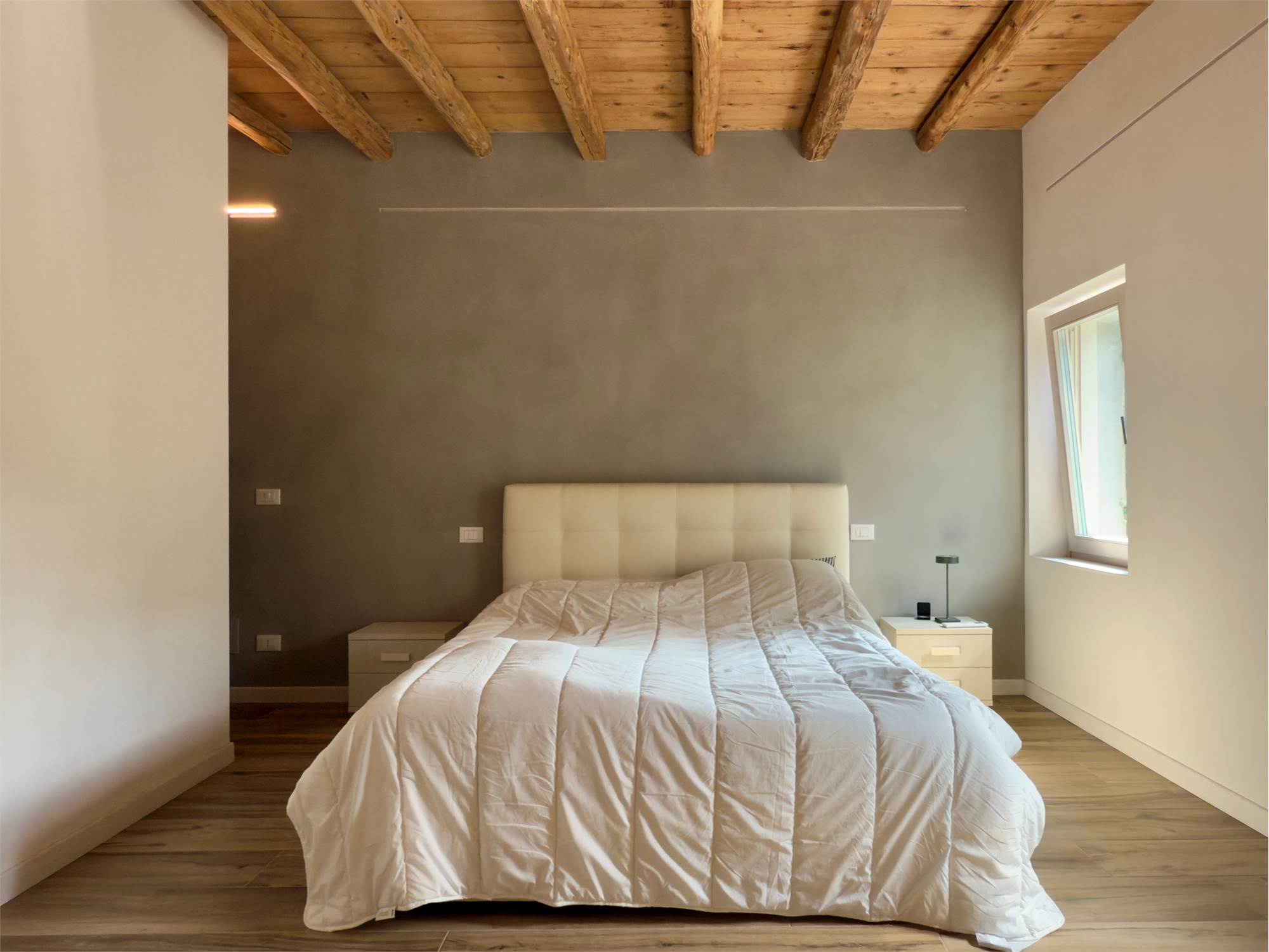Salendo ancora, il secondo piano regala una piacevole sorpresa: un mini appartamento con ingresso indipendente, perfetto come soluzione autonoma o per ospitare amici e familiari. È composto da una zona giorno open-space, camera matrimoniale con angolo cabina armadio e bagno finestrato con doccia.