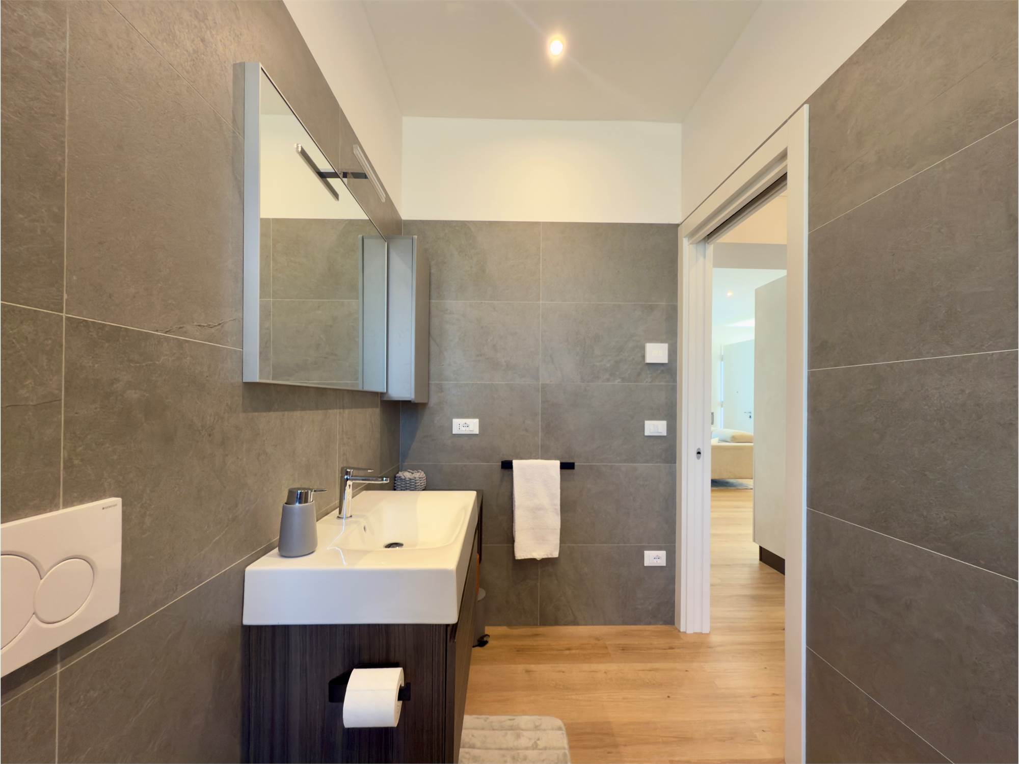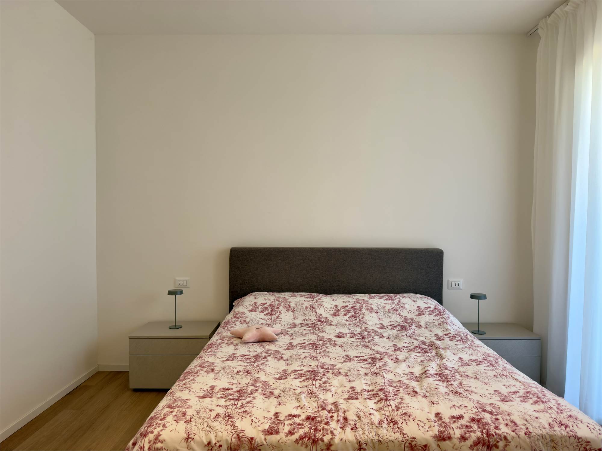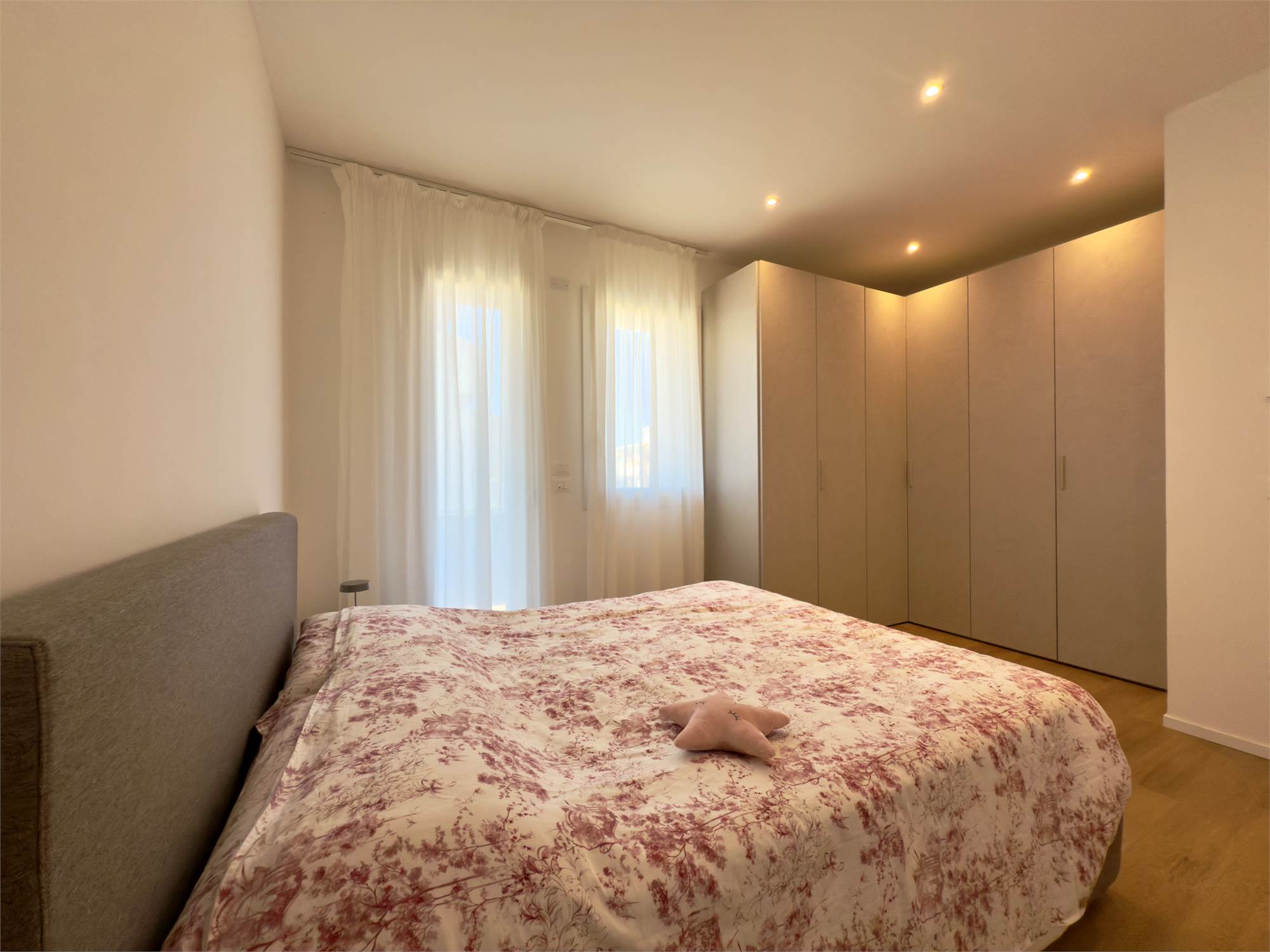 La zona notte comprende una camera matrimoniale e un bagno finestrato con finiture di qualità.