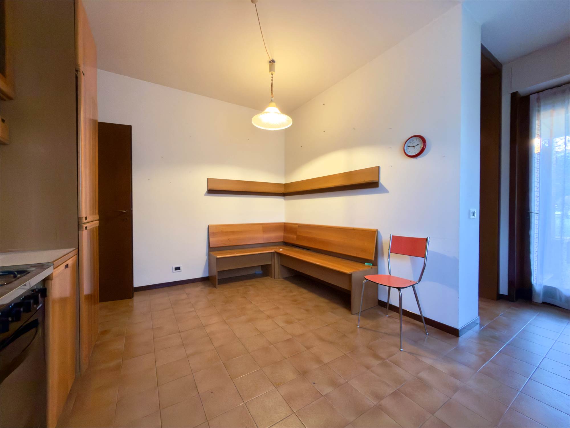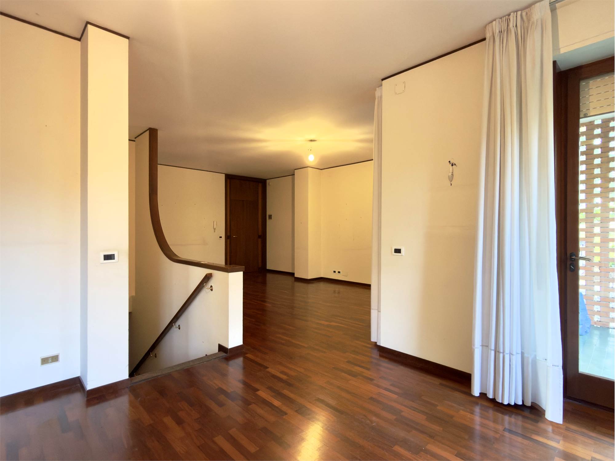 L'ingresso si apre su un grande salone, dove la zona living e l'area pranzo si fondono in un unico ambiente luminoso e raffinato. La cucina è abitabile, separata.