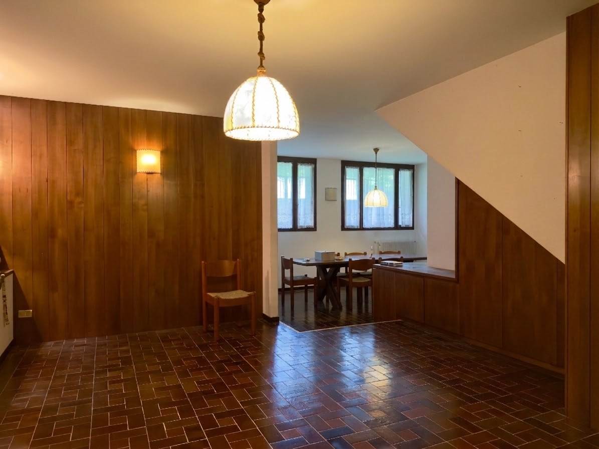 Scendendo al piano inferiore, scopriamo una grande taverna pensata per i momenti indimenticabili. Uno spazio caldo e accogliente, completo di cucina attrezzata e caminetto tradizionale.